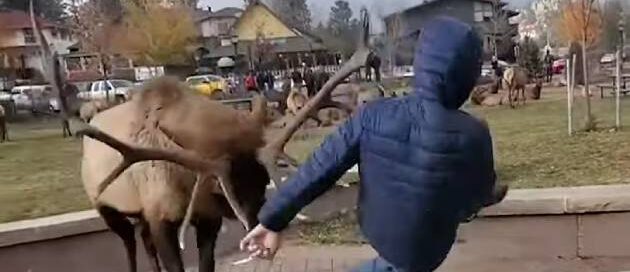 A video taken recently from Estes Park, Colo., depicting a bull elk charging at and knocking a man over a concrete wall has gone viral. Check it out. https://www.youtube.com/watch?v=tN0kmK_LpXQ That elk just yeeted that guy! That's a thing the kids say, right? Yeeted? The video, taken by Denver resident Eric Burley, shows Burley clearly trying [...]